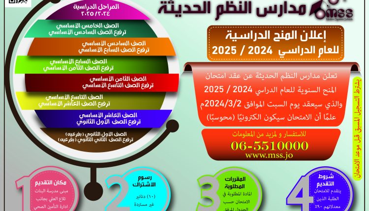 تعلن مدارس النظم الحديثة عن موعد عقد امتحان المنح السنوية للعام الدراسي 2024-2025 ..