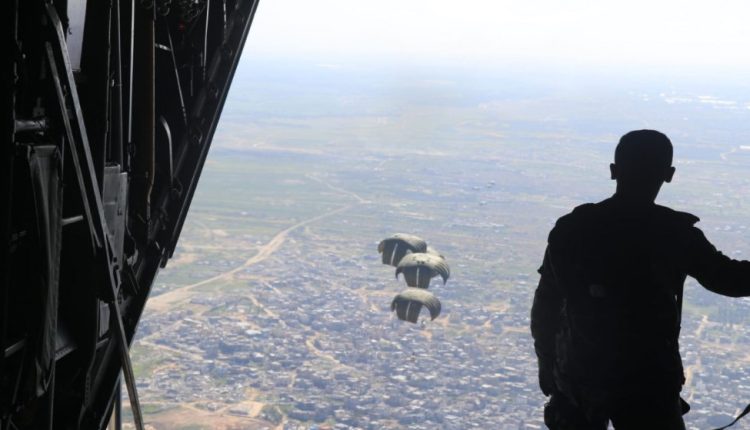 وأكدت القوات المسلحة أنها مستمرة بإرسال المساعدات عبر جسر جوي لإيصال المساعدات الإنسانية والطبية سواء كانت من خلال طائرات المساعدات من مطار ماركا باتجاه مطار العريش الدولي أو من خلال عمليات الإنزال الجوي على قطاع غزة أو قوافل المساعدات البرية.