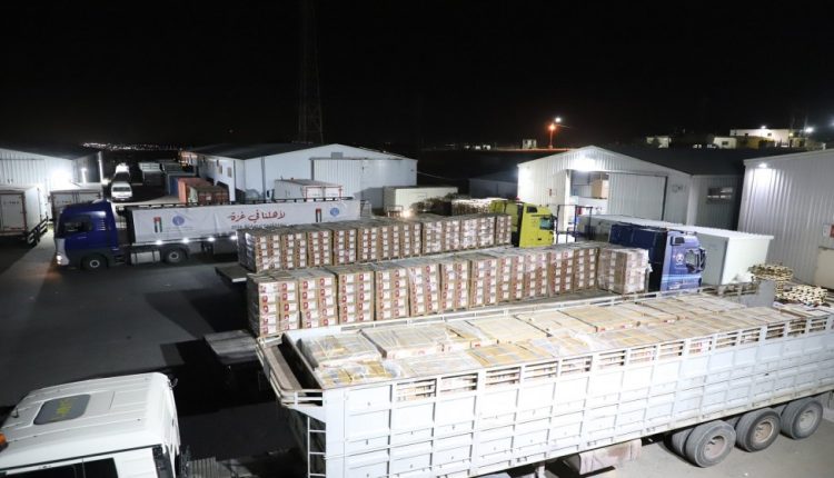 وحملت القافلة المكونة من 75 شاحنة الطرود الغذائية لتعبر جسر الملك حسين نحو معبر كرم أبو سالم ليصار إلى إيصالها وتسليمها لأهلنا في غزة وتوزيعها من خلال الجمعيات والمنظمات الشريكة في القطاع.