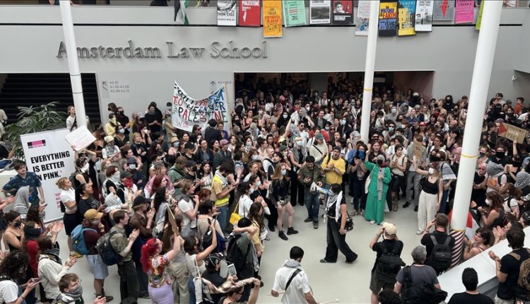 وفي جامعة أمستردام، طالب المتظاهرون إدارة الجامعة بالاستقالة بسبب تعاملها مع الاحتجاجات الطلابية.