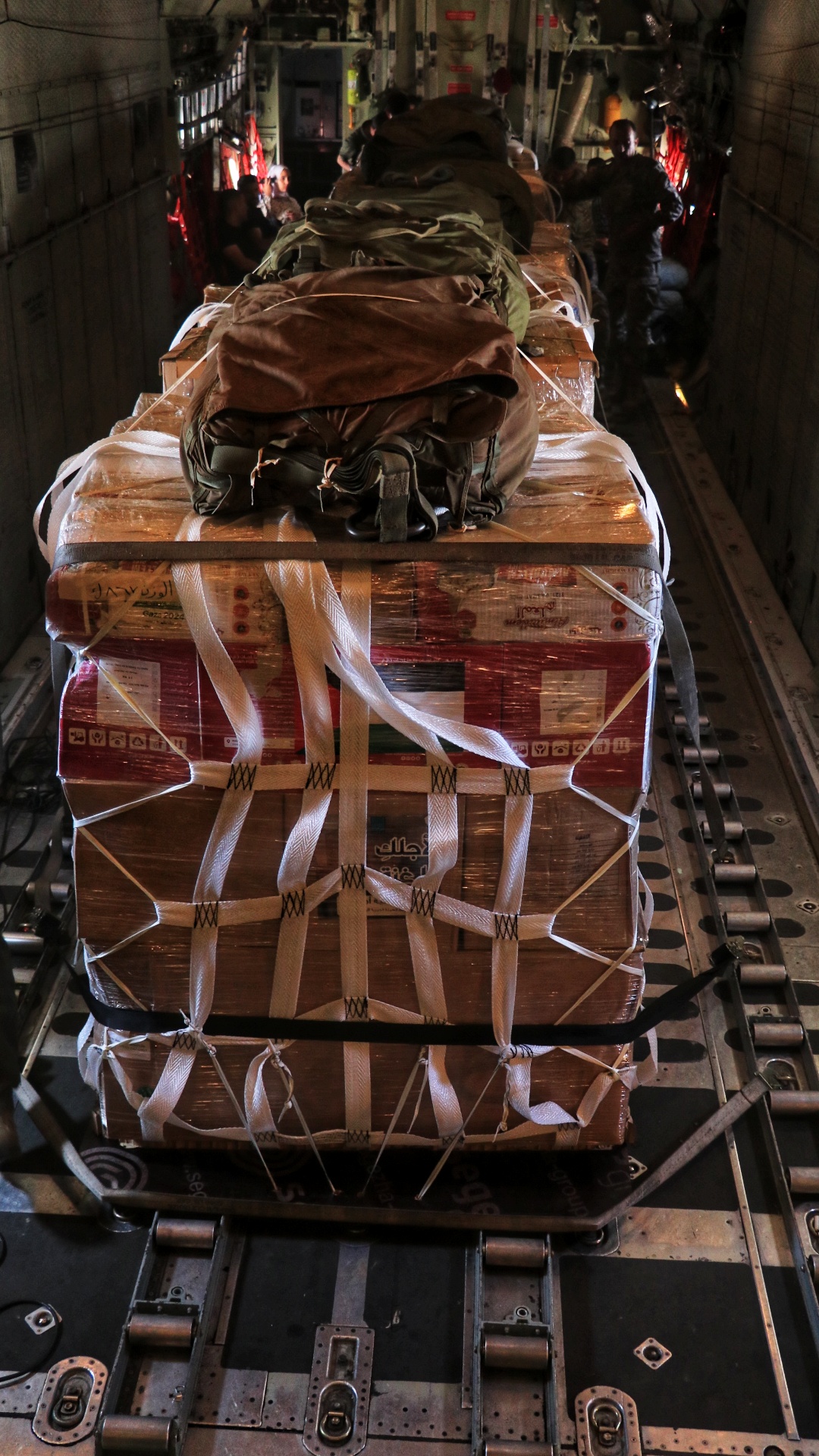 واشتملت الإنزالات الجوية على مساعدات إغاثية وإنسانية لمساندة الأهل في قطاع غزة، جراء الحرب الإسرائيلية المستمرة على القطاع.