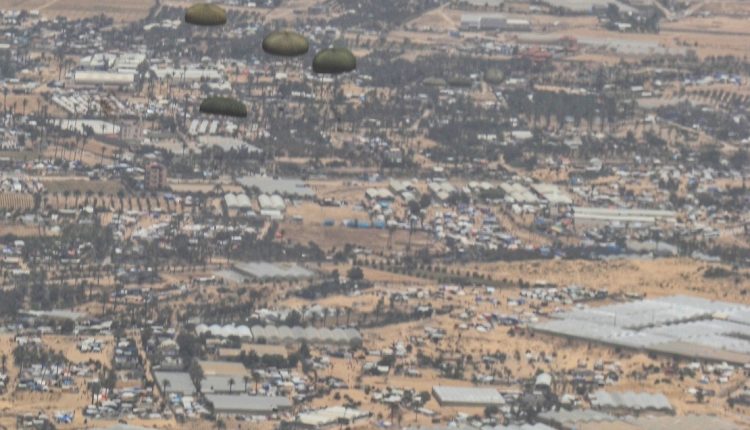 حصادنيوز- نفّذت القوات المسلحة الأردنية – الجيش العربي، اليوم الثلاثاء 21 أيار 2024، 3 إنزالات جوية لمساعدات إنسانية وغذائية استهدفت عدداً من المواقع جنوب قطاع غزة، في ظل استمرار الحرب وارتفاع حدة القتال والذي أصبح قطاع غزة بسببها ساحة للعمليات يعاني فيها السكان المدنيين من نقص حاد بالمواد الغذائية والإغاثية.