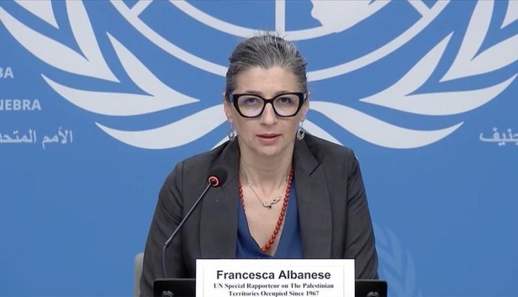 حصادنيوز– دعت المقررة الخاصة للأمم المتحدة المعنية بفلسطين فرانشيسكا ألبانيز، السبت، المجتمع الدولي إلى فرض عقوبات على إسرائيل وتعليق العلاقات الدبلومسية معها، حتى “تنصاع لقرار محكمة العدل الدولية”.