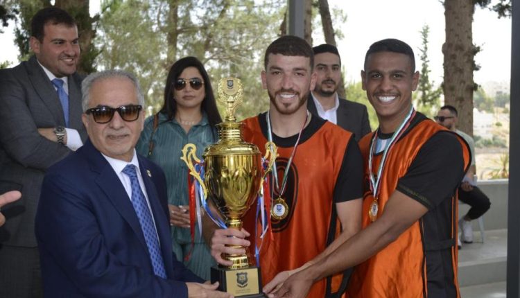 وفي نهاية البطولة التي شهدت ندّية وإثارة كبيرة بين الفرق المشاركة وحضور جماهيري مميز، قام رئيس الجامعة الأستاذ الدكتور ساري حمدان بتتويج اللاعبين والفرق الفائزة بالبطولة، بحضور عميد شؤون الطلبة الدكتور مصطفى العطيات ونائب عميد شؤون الطلبة الدكتورة نور الدباس ومساعد عميد شؤون الطلبة السيد عصام السحار وعدد من أعضاء الهيئتين التدريسية والإدارية.