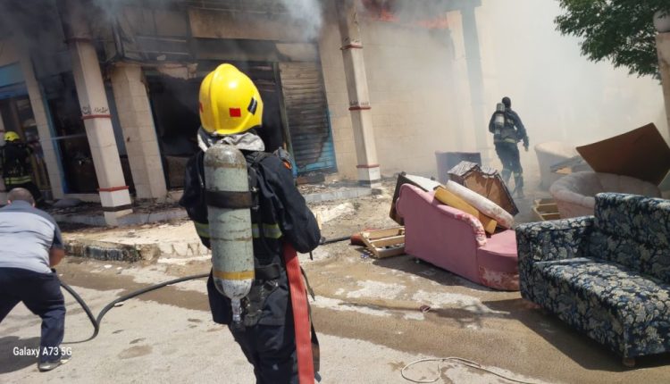 الدفاع المدني يتعامل مع حريق محل لتنجيد السيارات في الزرقاء