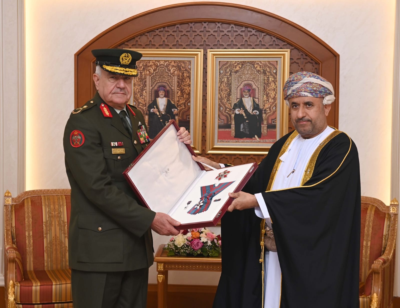 من جانب آخر، تسلم اللواء الركن الحنيطي، وسام عُمان العسكري من الدرجة الثانية، من أمين عام وزارة الدفاع العُمانية، والذي قدمه جلالة السُّلطان هيثم بن طارق، سلطان عُمان، وذلك تقديراً لجهود رئيس هيئة الأركان المشتركة وإسهاماته في توثيق أواصر التعاون العسكري القائم بين البلدين الشقيقين.