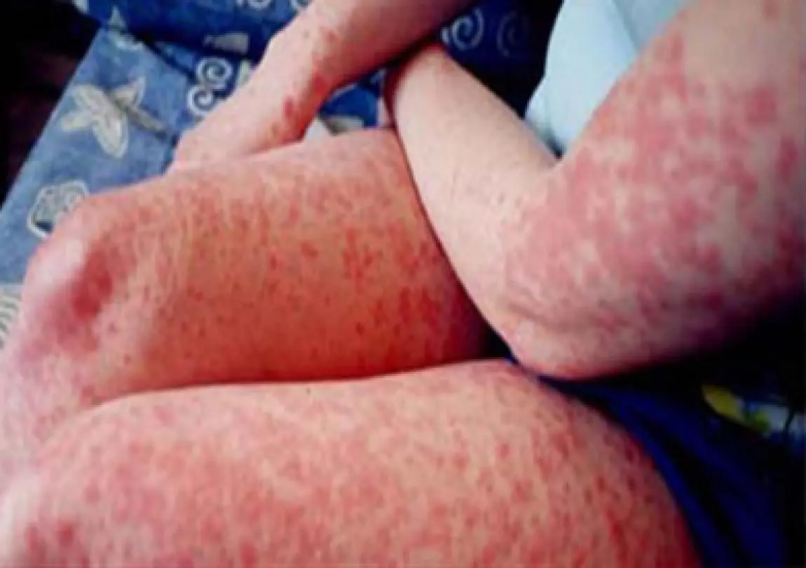 وبين البلبيسي أن أعراض المرض؛ ارتفاع في درجات الحرارة، وقشعريرة، وآلام في الظهر، وتعب عام، وإرهاق، وتضخم الغدد اللمفاوية، وقد يظهر أحيانا الطفح الجلدي وتستمر لمدة أسبوع تقريبا ويزل لوحده دون أي علاجات.