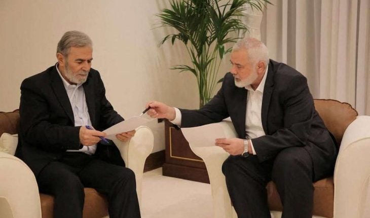وبحسب مصادر “القدس العربي”، فإن زياد نخالة الأمين العام لحركة الجهاد، ونائبه محمد الهندي، وصلا إلى الدوحة، الأربعاء، قادمين من طهران، واستقبلهما إسماعيل هنية، رئيس المكتب السياسي لحركة حماس، وحضر الاجتماع أيضاً عدد من قيادات الحركة.