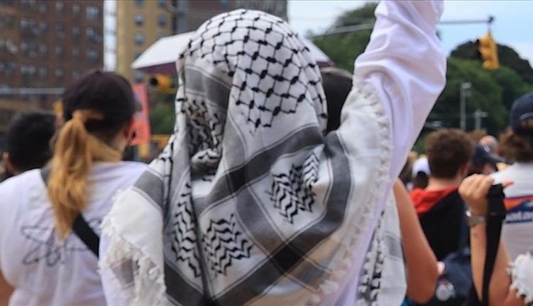 وتنظم الهيئة المظاهرات منذ بدء حرب إسرائيل على قطاع غزة في 7 أكتوبر/ تشرين الأول، واليوم حملت شعار “الكوفية الفلسطينية رمز القضية”.