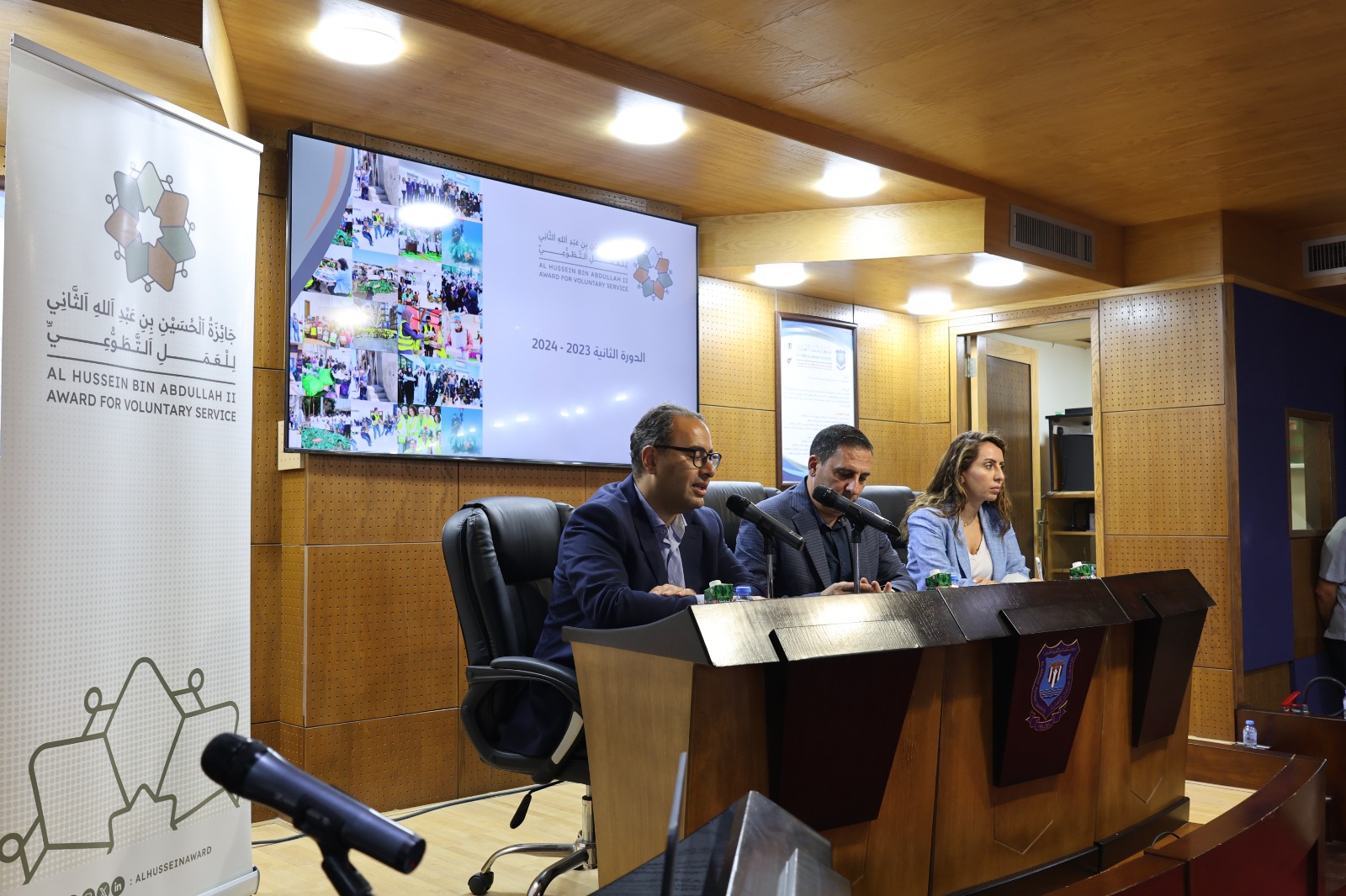 جاء ذلك خلال اللقاء التعريفي بجائزة الحسين بن عبد الله الثاني للعمل التطوعي في دورتها الثانية الذي نظمته وزارة الشباب بالتعاون مع عمادة شؤون الطلبة، بحضور سمر الداوود عضو لجنة إدارة الجائزة، وأماني المجالي مديرة الإعلام بوزارة الشباب، وبحضور عميد شؤون الطلبة بجامعة عمان الاهلية الدكتور مصطفى عطيات ونائب العميد الدكتورة نور الدباس وجمع غفيرمن طلبة الجامعة.