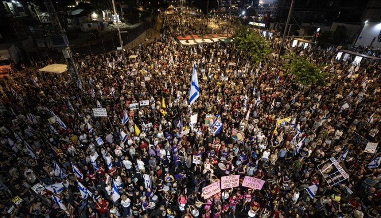 تظاهر آلاف الإسرائيليين، في مدينة تل أبيب، للمطالبة بإبرام صفقة تبادل أسرى مع الفصائل الفلسطينية، وإجراء انتخابات مبكرة.
