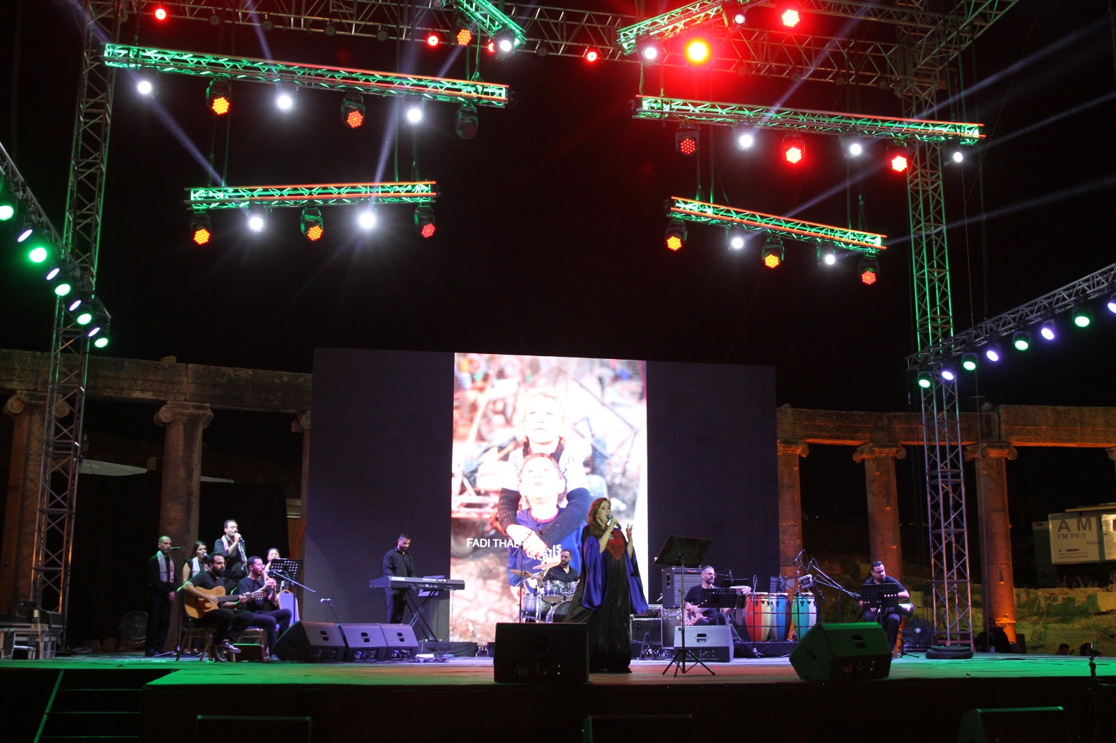 وبدأت نحاس وصلتها الفنية بأغنية “أهو دا الي صار ” للفنانة فيروز والتي اطربت الجمهور بها ، ورحبت من بعدها بجمهور جرش وشكرتهم على حضورهم في هذه الليلة وشكرت مدينة جرش على هذا الاستقبال الرحب وقالت ” اليوم أنا و فرقتي الموسيقية رح نقدم اغاني معنية بشعب فلسطين وبنضالهم العظيم “.