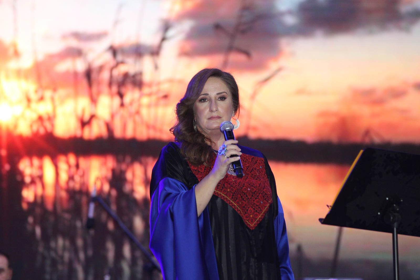 و بدأت وصلتها الفنية بأغنية “يمه مولي الهوى” ولترحل بعدها بالجمهور وتطلب دقيقة صمت على ارواح شهداء غزة حيث قالت” عندما تذكر غزة لا يسعنا إلا الانحناء على كل دقيقة صمود وتضحية منهم.. لنقف دقيقة صمت على ارواح شهدائهم”.