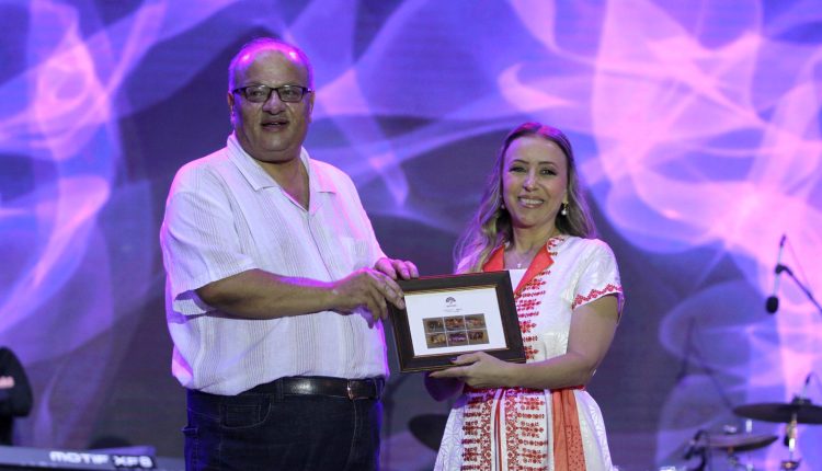 وكرم المدير التنفيذي لمهرجان جرش ايمن سماوي و رئيس بلدية جرش احمد العتوم الفنانة الأردنية مكادي نحاس بدرع المهرجان.