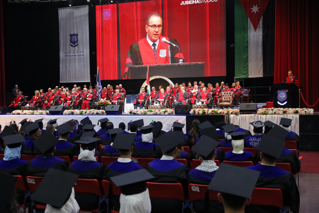 وأضاف : إنه لمِن دواعي الفخرِ والاعتزاز أن نكون هنا اليوم في جامعةٍ أضاءت سماءَ التعليم العالي في الأردن بنورِ السبقِ والريادةِ والابتكار، منذُ تأسيسها كأولِ جامعةٍ خاصةٍ في الأردن قبل أكثرَ من أربعة وثلاثين عاماً على يد المرحومٍ المؤسس الدكتور أحمد الحوراني، حتى أصبحت منارةً للعلمِ ومركزاً للإشعاعِ الحضاري.