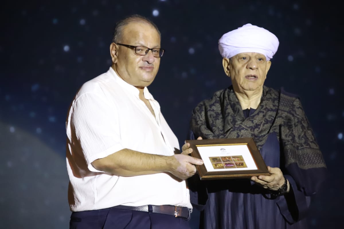 في ختام الأمسية ،،، كرّم مدير المهرجان أيمن سماوي المنشد ياسين التهامي حيث أثرى الساحة الفنية بروحانيته وإبداعه، وأضاف لمسة خاصة على الساحة الرئيسية للمهرجان.