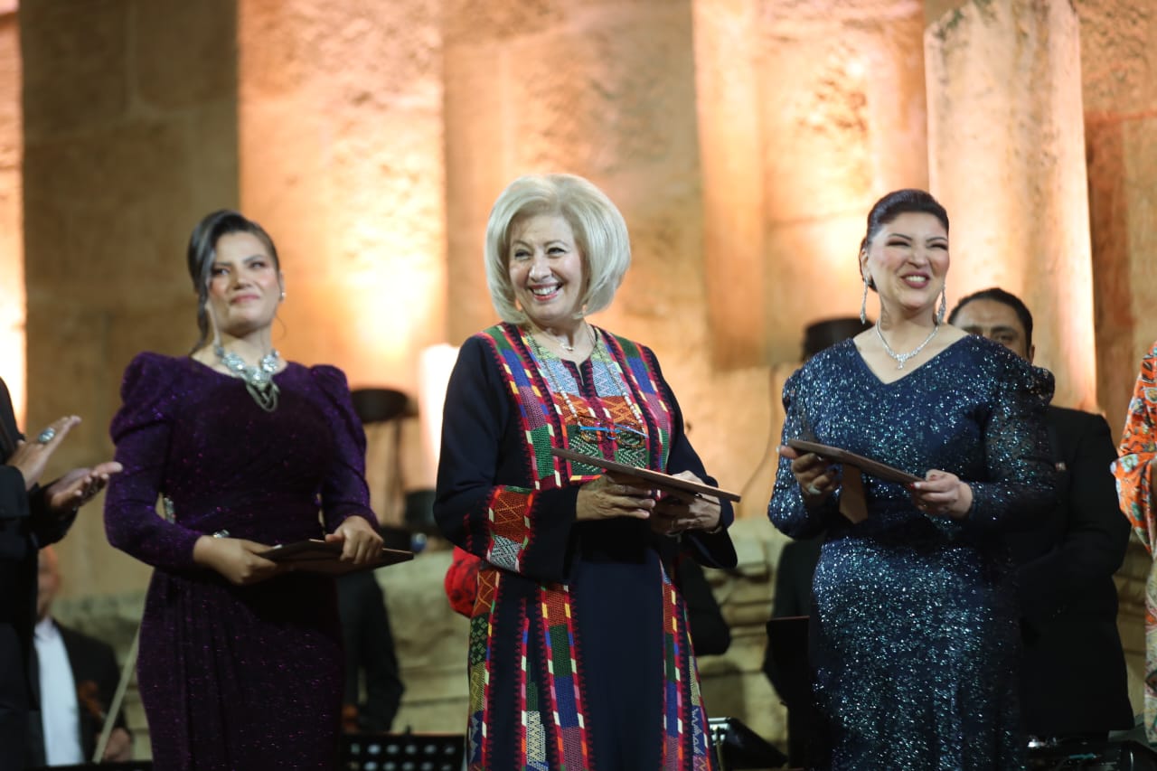 وقامت السيدة هيفاء النجار وزيرة الثقافة بتكريم المطربتين والفرقة الموسيقية.