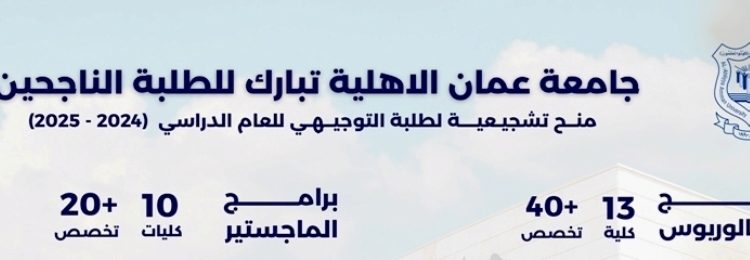 عمان الاهلية تهنىء الناجحين بالثانوية العامة وتعلن عن استمرار القبول والتسجيل للفصل الدراسي الأول 2024 – 2025