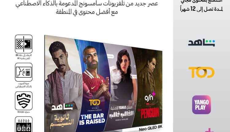 حصادنيوز – أطلقت شركة سامسونج إلكترونيكس المشرق العربي، عرضاً ترويجياً حصرياً في جميع أنحاء المملكة، متيحة من خلاله لزبائنها من مقتني أجهزة التلفاز الذكية من سامسونج المعززة بتقنيات الذكاء الاصطناعي، الاستمتاع بما يصل إلى 12 شهراً من المحتوى المجاني من أفضل المنصات في منطقة الشرق الأوسط وشمال أفريقيا. ويتضمن العرض هدايا مجانية عند شراء تلفاز سامسونج الجديد الذي يتميز بتقنية “AI Upscaling”.
