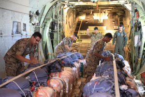 وفي إطار جهود الدعم المستمر للأشقاء الفلسطينيين في ظل الأوضاع الإنسانية الصعبة التي يمرون بها، تم توسيع نطاق الإنزالات الجوية لتشمل مختلف المناطق في شمال وجنوب قطاع غزة والتي توجت بمشاركة جلالة الملك على إحدى طائرات الإنزال الجوي، كما رافق سمو الأمير الحسين بن عبد الله الثاني ولي العهد طائرات سلاح الجو الملكي إلى مطار العريش، إضافة إلى مشاركة سمو الأميرة سلمى بنت عبدالله الثاني في عمليات الإنزال الجوي، مما يعكس التزام الهاشميين بالقضية الفلسطينية ووضعها على سلم أولوياتهم واهتماماتهم من خلال مشاركتهم الشخصية في الجهود المبذولة في إيصال المساعدات والإمدادات إلى المناطق المتضررة، والوقوف إلى جانب الشعب الفلسطيني في هذه الظروف الصعبة.