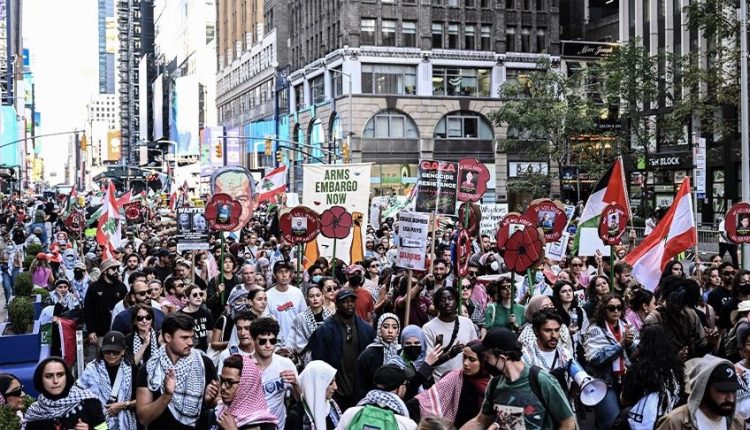 حصادنيوز – خرج الآلاف في مظاهرة بمدينة نيويورك، السبت، احتجاجا على حرب الإبادة الجماعية التي ترتكبها إسرائيل في قطاع غزة منذ عام.
