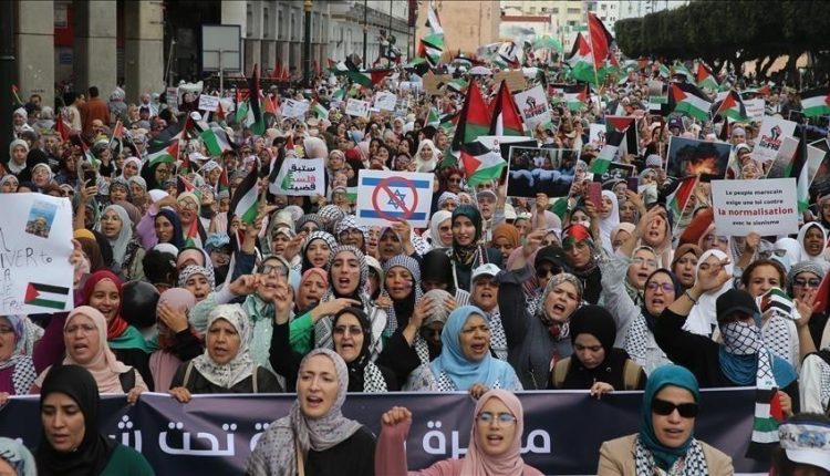وبوتيرة شبه يومية منذ اندلاع العدوان على غزة، تشهد مدن مغربية احتجاجات شعبية حاشدة للتضامن مع الشعب الفلسطيني وحقوقه، ولاسيما إنهاء الاحتلال الإسرائيلي وقيام الدولة الفلسطينية، وعاصمتها القدس الشرقية المحتلة.
