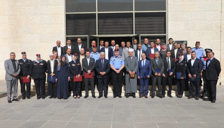 وفي ختام الاحتفال الذي حضره مساعد مدير الأمن العام للقضائية العميد الدكتور علي الزعبي وأمين عام المجلس الوطني لشؤون الأسرة الدكتور محمد مقدادي ومدير معهد القضاء الشرعي الدكتور نزال دعسان وعدد من كبار الضباط وممثلين من الشركاء من المؤسسات المحلية والإقليمية والدولية وزع راعي الحفل الشهادات والجوائز التقديرية على الخريجين.