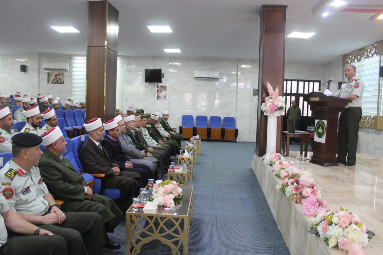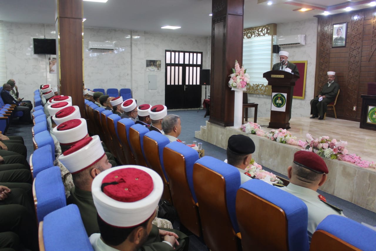 وقال مفتي القوات المسلحة في كلمة له: ” جمعنا الله تعالى في هذا اليوم المبارك على خير الأمور وأعظمها، وأبهاها وأجملها، ألا وهو تخريج ثلة مباركة من نشــامى دبلوم القراءات والدراسات القرآنية فوج الإمام أبي عمرو البصري)، الذين ساروا على طريق العلماء وكبار المجتهدين بهذا العلم العظيم”، مضيفاً بأن القرآن الكريم كتاب الله الخالد، ومعجزة رسوله، التي لا تفنى إلى الأبد فهو كتاب منتظم الآيات متعاضد الكلمات، لا نفور فيه ولا تعارض.