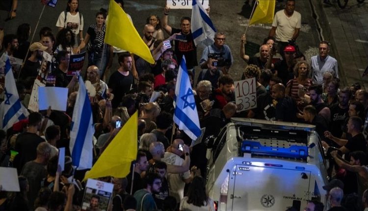 ونشرت الصحيفة عبر حسابها على منصة “إكس” مقطع فيديو يظهر عشرات المتظاهرين وهم يحتشدون في وسط الشارع، ويرددون شعارات ضد قرار نتنياهو.