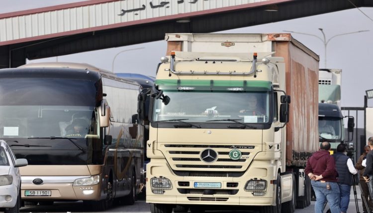 “، نقل عن مسؤولين في معبر جابر، أن ساحة التبادل في معبر جابر استقبلت 90 شاحنة دخلت إلى الساحة الأربعاء، منها 48 شاحنة أردنية عبرت إلى سوريا.