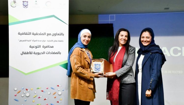 حصاد نيوز _ في إطار جهود مركز صحة المرأة التابع لكلية التمريض في جامعة عمان الأهلية لتعزيز التوعية الصحية بين أفراد المجتمع، وبتنظيم مشترك مع الملحقية الثقافية السعودية لدى الأردن، قدمت الصيدلانية حنين المومني محاضرة توعوية بعنوان “المضادات الحيوية وآثارها على الأطفال” في أكاديمية نورث سيتي.