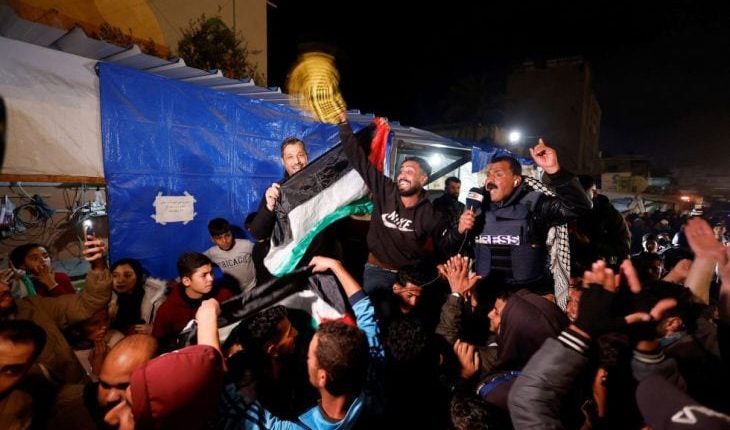 حصادنيوز -غزة: احتفل آلاف الفلسطينيين في قطاع غزة، مساء الأربعاء، مع إعلان التوصل لاتفاق وقف إطلاق النار وتبادل الأسرى بين إسرائيل وحركة حماس والذي يفترض أن يضع حداً للحرب الاسرائيلية المستمرة منذ أكثر من 15 شهرا.