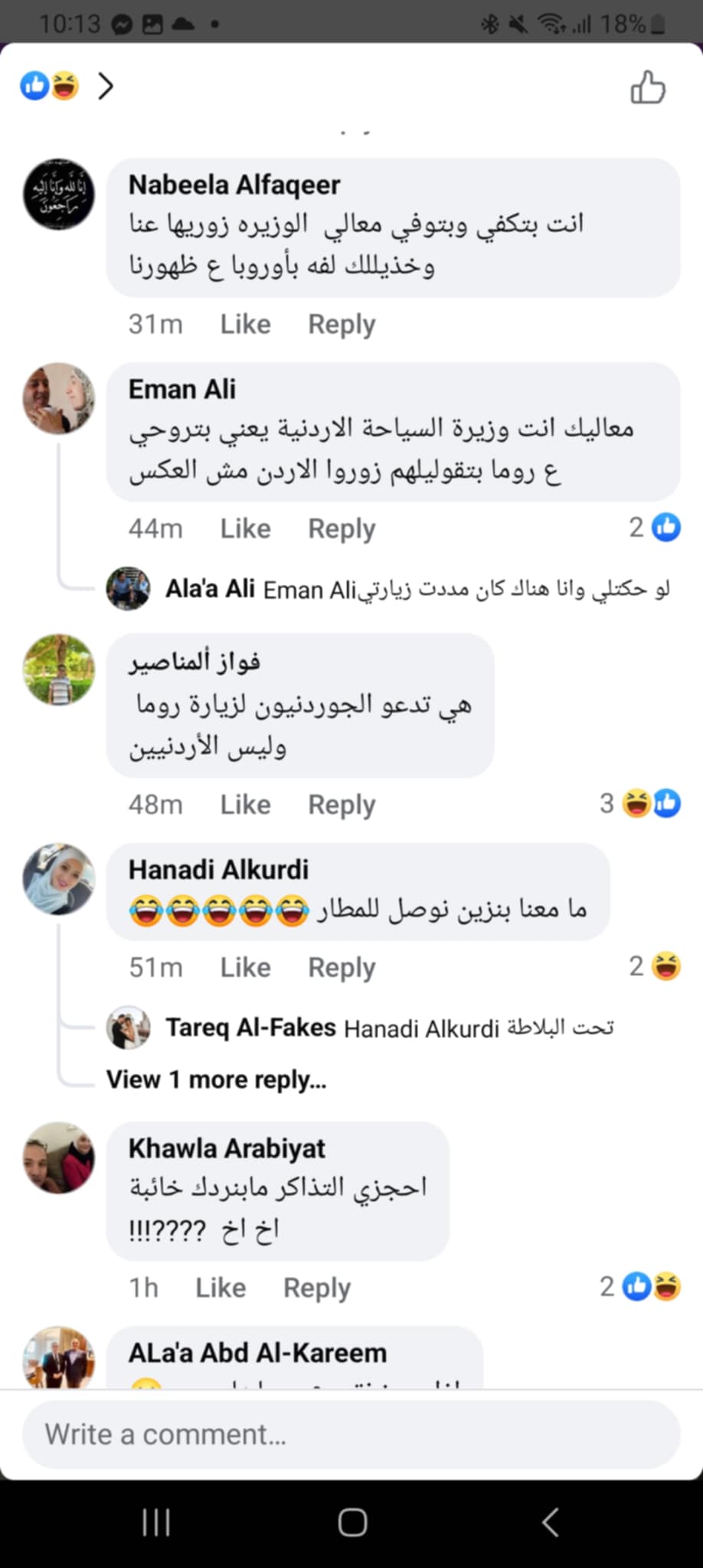 غضب واستياء شعبي بعد دعوة الوزيرة عناب الاردنيين الى روما ..!!