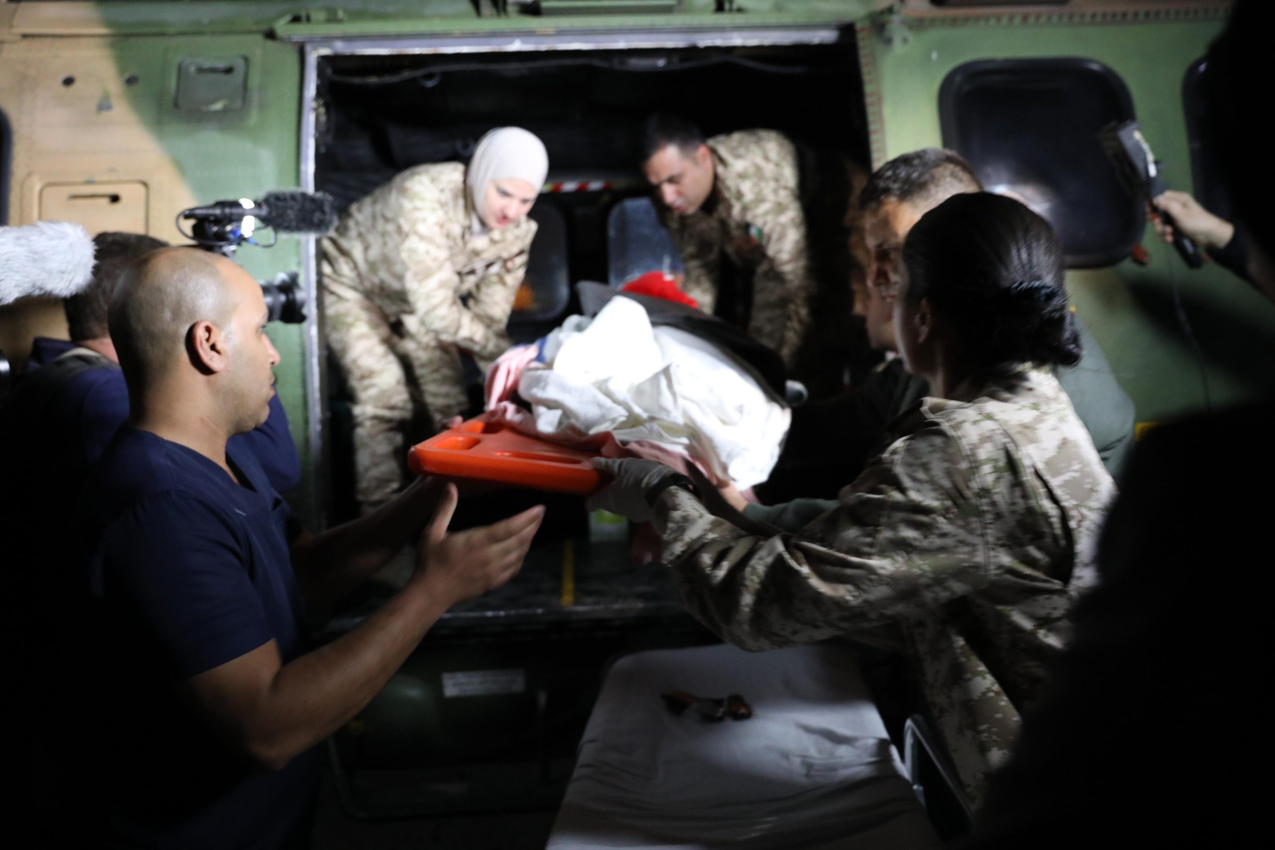 وجرى نقل الطفلة حال وصولها إلى الأراضي الأردنية بواسطة طائرة عمودية إلى مدينة الحسين الطبية/ مستشفى الملكة رانيا للأطفال، لمتابعة حالتها الصحية من قبل فريق طبي متخصص لمثل هذه الحالات المرضية، وإجراء الفحوصات اللازمة لها.