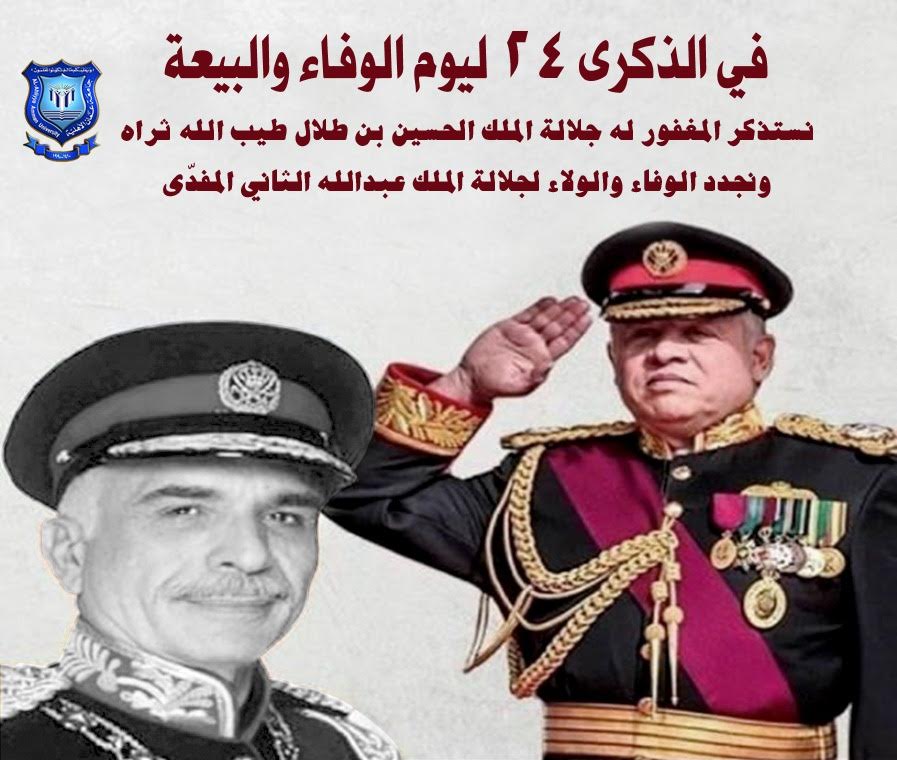 حصادنيوز – في الذكرى السادسة والعشرين ليوم الوفاء والبيعة، أسرة جامعة عمان الاهلية ممثلة برئيس وأعضاء مجلس الأمناء ورئيس وأعضاء هيئة المديرين ورئيس الجامعة وأعضاء الهيئتين التدريسية والإدارية وطلبة الجامعة يستذكرون المغفور له بإذن الله جلالة الملك الحسين بن طلال طيب الله ثراه، ويجددون الوفاء والولاء لقائد الوطن جلالة الملك عبدالله الثاني المفدّى.