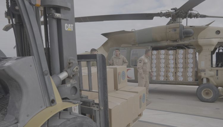 حصادنيوز – شاركت في الجسر الجوي الإنساني اليوم الأحد 16 طائرة مروحية جديدة اقلعت من قاعدة الملك عبدالله الثاني الجوية، منها طائرتان من دولة إيطاليا الصديقة.