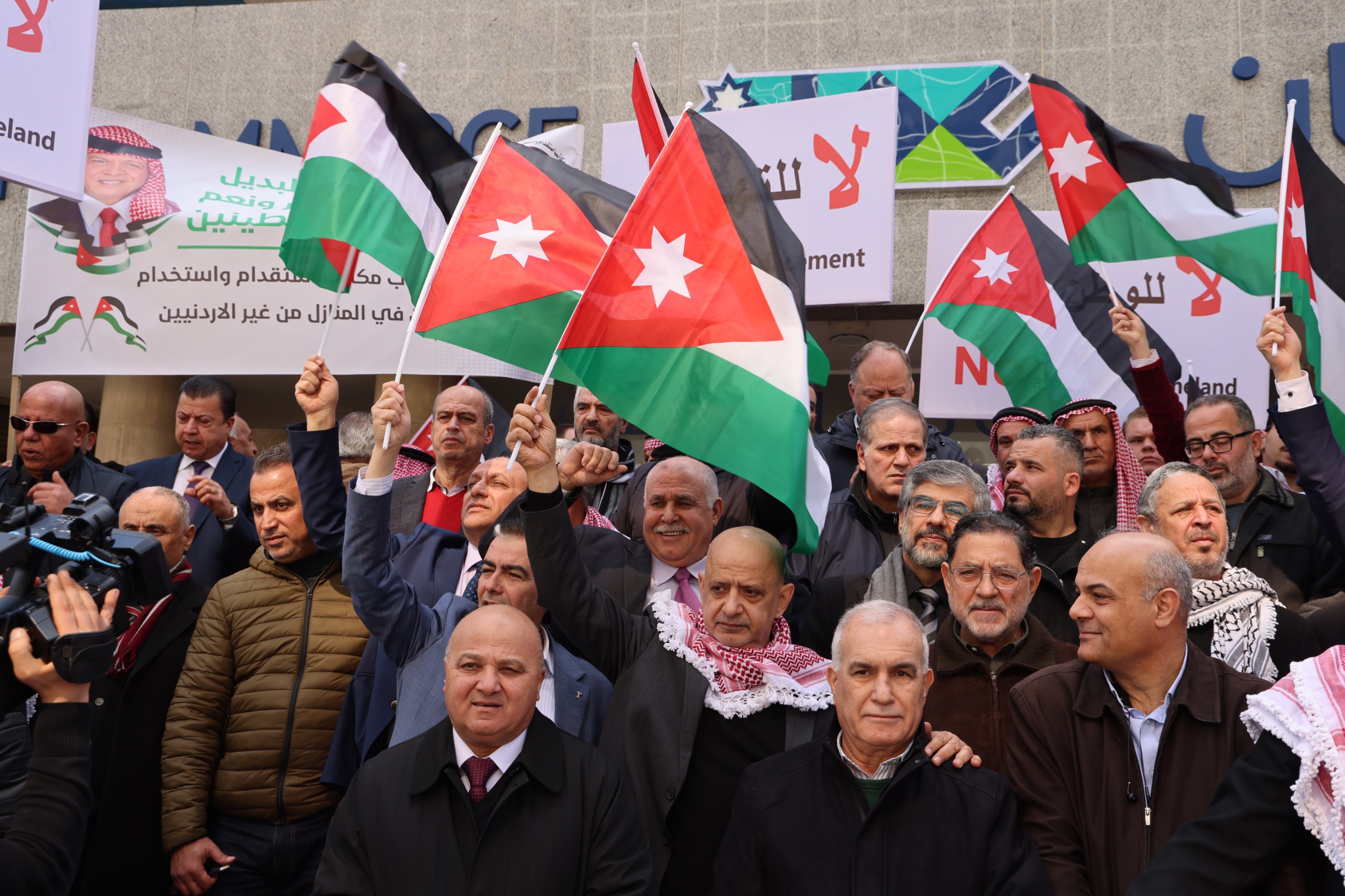 وشارك بالوقفة التي تخللها رفع الإعلام الأردنية وشعارات تؤكد الرفض التام للتهجير والتوطين والوطن البديل، وتؤكد الوقوف خلف القيادة الهاشمية، رؤساء غرف تجارية وممثلو القطاعات التجارية ورؤساء نقابات وجمعيات أصحاب العمل وأصحاب أعمال وشركات.