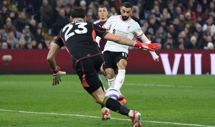 وأهدر البديل داروين نونيز فرصة رائعة لاستعادة تقدم ليفربول وكاد أستون فيلا أن يسجل هدفا في الوقت بدل الضائع عندما سدد دونييل مالين كرة مرت جنب القائم.