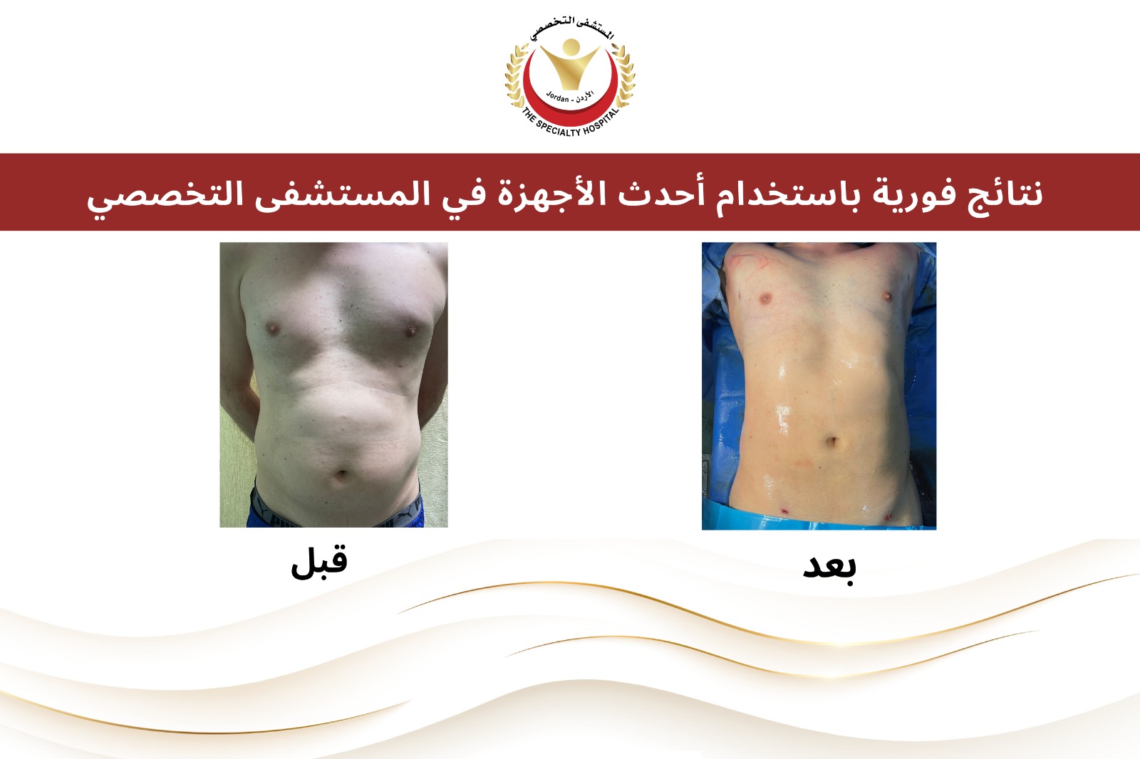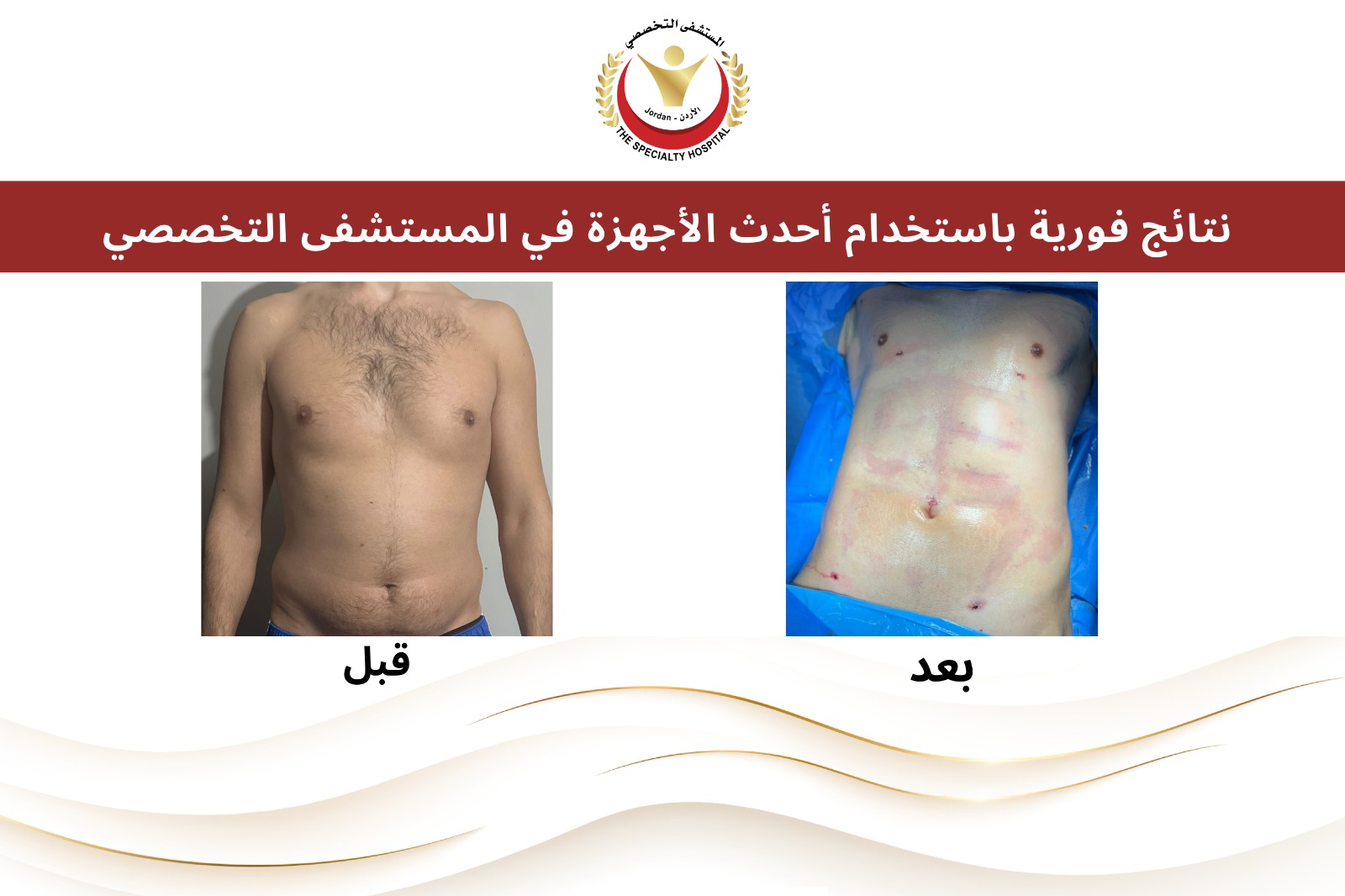 كما يتميز جهاز VASER Ultrasonic System لشفط الدهون ونحت الجسم 4D Sculpturing بدقة عالية باستخدام الموجات فوق الصوتية المتقدمة التي تعطي نتائج مميزة بنحت الجسم وإبراز العضلات بأمان وفعالية وتكون مدة الاجراء سريعة ونتائج مضمونة مع تقليل التورم والكدمات مقارنة بالطرق التقليدية. وقد أكد الدكتور سائد ان تقنية نحت الجسم 4D Sculpturing تتاح لأول مرة في الأردن في المستشفى التخصصي وتم عمل تدريب عملي وتعريفي على الأجهزة وأبدى المشاركون رغبتهم في استخدام هذه التقنيات التي تضمن نتائج مميزة لعمليات التجميل.