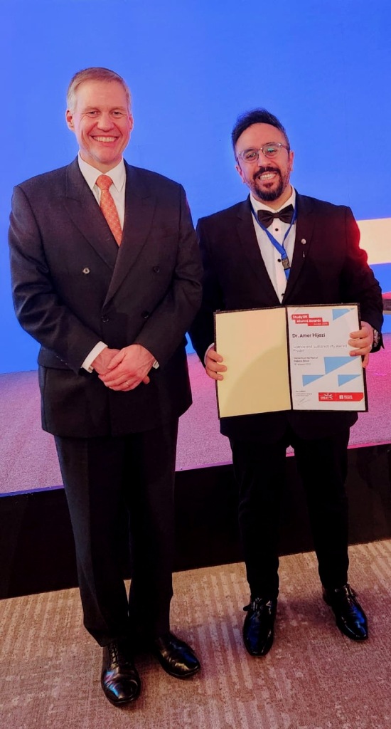 د. حجازي من عمان الاهلية يُكرَّم بحفل جوائز خريجي المملكة المتحدة 2025