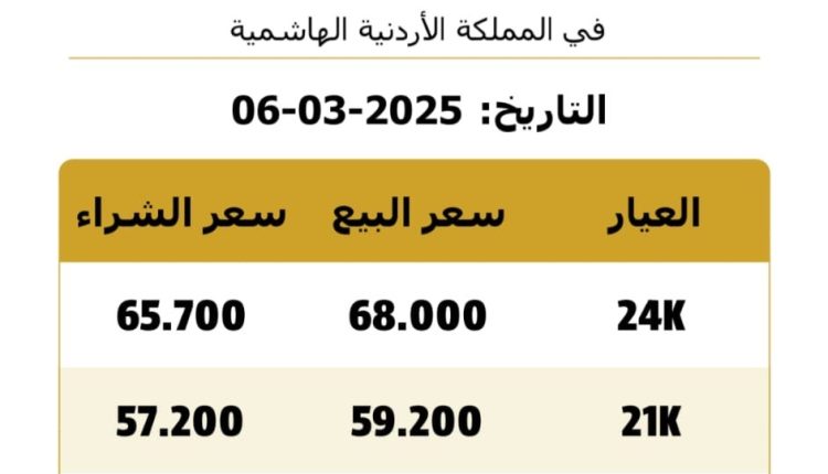 وبلغ سعر بيع الغرام الواحد من الذهب عيارات 24 و18 و14 لغايات الشراء من محال الصاغة 68 و52.7 دينارا و40 دينارا على التوالي.