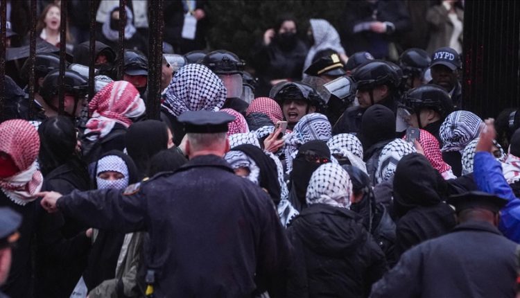 طلاب جامعة كولومبيا يستأنفون الاحتجاجات على زيارة بينيت والشرطة تتدخل