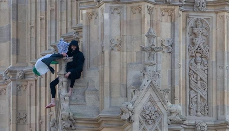حاملا علم فلسطين.. ناشط تسلق برج “بيغ بن” ينزل بعد 16 ساعة