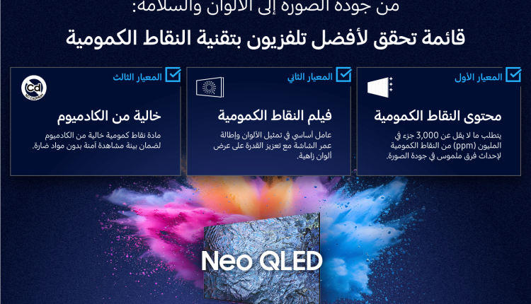 تلفزيونات ‘Samsung QLED’ تلغي الحاجة إلى طبقة الفوسفور المنفصلة، ما يعزز كفاءة الإضاءة والطاقة مع تقديم ألوان أكثر حيوية. أما شاشات ‘QD-OLED’، التي تتكون من طبقة الترانزستور الرقيق (TFT)، ومصدر ضوء ذاتي الانبعاث، وفيلم نقاط كمومية يستخدم الضوء المنبعث من المصدر الضوئي، فتأخذ جودة الصورة إلى مستوى أكثر تقدماً. وفي كلتا الحالتين، يسهم فيلم النقاط الكمومية المخصص، الذي يحتوي على كمية كافية من النقاط الكمومية، بدور أساسي في تقديم جودة صورة فائقة وعمر أطول للشاشة.