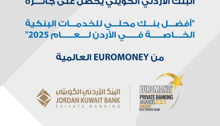 للعام الثالث على التوالي البنك الأردني الكويتي يفوز بجائزة “أفضل بنك للخدمات البنكية الخاصة في الأردن لعام 2025″من يوروموني العالمية