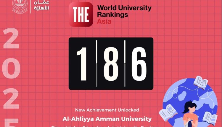 حصادنيوز – في إنجاز أكاديمي ريادي جديد ، حضرت جامعة عمان الأهلية وبقوة في تصنيف التايمز للجامعات في دول قارة أسيا 2025 وبالمرتبة 186، ضمن قائمة ضمّت قرابة 1200 جامعة أسيوية ؛ الأمر الذي يعكس التقدم المستمر للجامعة في تعزيز مكانتها الاكاديمية والعلمية والبحثية محلياً وعربياً وقارياً وعالمياً .