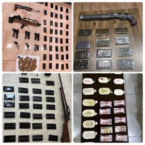 وفي إحدى مناطق البادية الوسطى داهمت كوادر الإدارة تاجراً للمخدرات والأسلحة وأُلقي القبض عليه وضبط داخل منزله 44 كف حشيش و 9 أسلحة نارية، وتم أيضاً في البادية الجنوبية إلقاء القبض على تاجرَين للمخدرات وضبط بحوزتهما 22 كف حشيش وسلاح ناري .