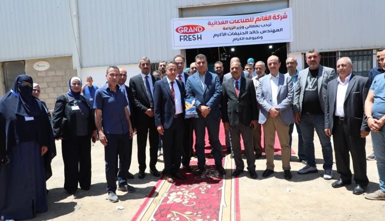 حصادنيوز – افتتح وزير الزراعة المهندس خالد الحنيفات مساء اليوم بحضور مدير عام شركة المدن الصناعية الأردنية السيد عمر جويعد ومدير مؤسسة الاقراض الزراعي نائب رئيس غرفة الصناعة محمد الجيطان ومتصرف الموقر مصطفى العبادي وعددا من نواب ووجهاء الموقر ، مصنع شركة الغانم لصناعة وتجارة المواد الغذائية في مدينة الموقر الصناعية والذي يعمل على إنتاج البطاطا النصف مقلية ، يذكر ان المصنع منشأ على مساحة 656 متر مربع وهو من المصانع المدعومة من وزارة الزراعة ضمن مشروع تحفيز الصناعات الغذائية في المدن الصناعية والتنموية والبلديات اضافة الى تمويل من الاقراض الزراعي بمبلغ ٧٠ الف دينار ، حيث يتوقع ان يشغل المصنع 55 عاملا وعاملة .