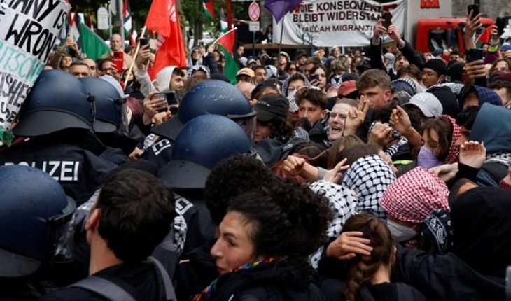 حصادنيوز – أُصيب عدد من الأشخاص في اشتباكات عنيفة بين متظاهرين وأفراد شرطة خلال مظاهرة مؤيدة للفلسطينيين في العاصمة الألمانية برلين لإحياء ذكرى النكبة.