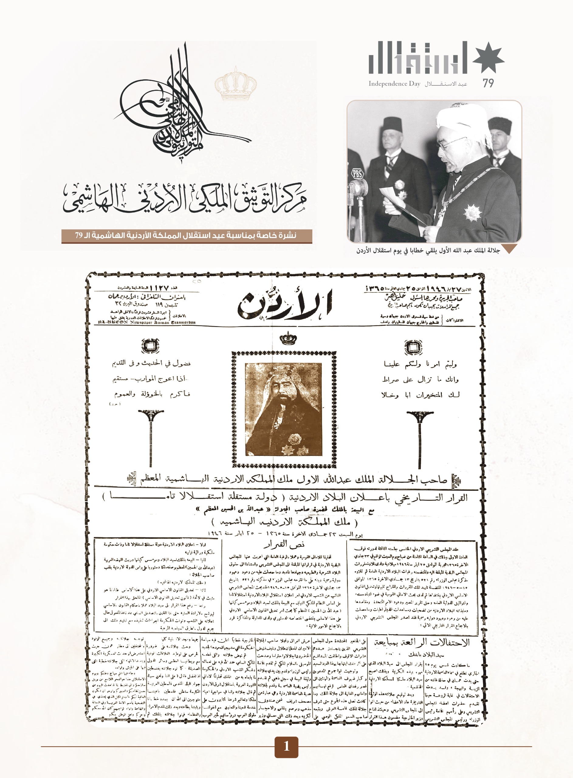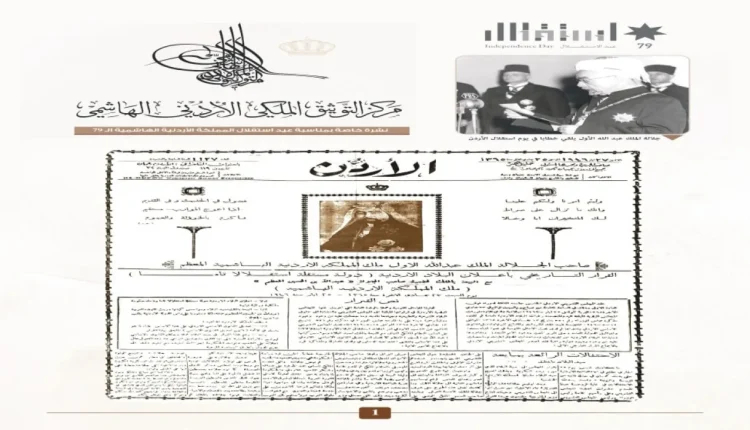حصادنيوز – أصدر مركز التوثيق الملكي الأردني الهاشمي بمناسبة الذكرى التاسعة والسبعين لاستقلال المملكة، نشرة توثيقية خاصة تستعرض أبرز المحطات والأحداث الوطنية التي رافقت هذا الحدث التاريخي الخالد.